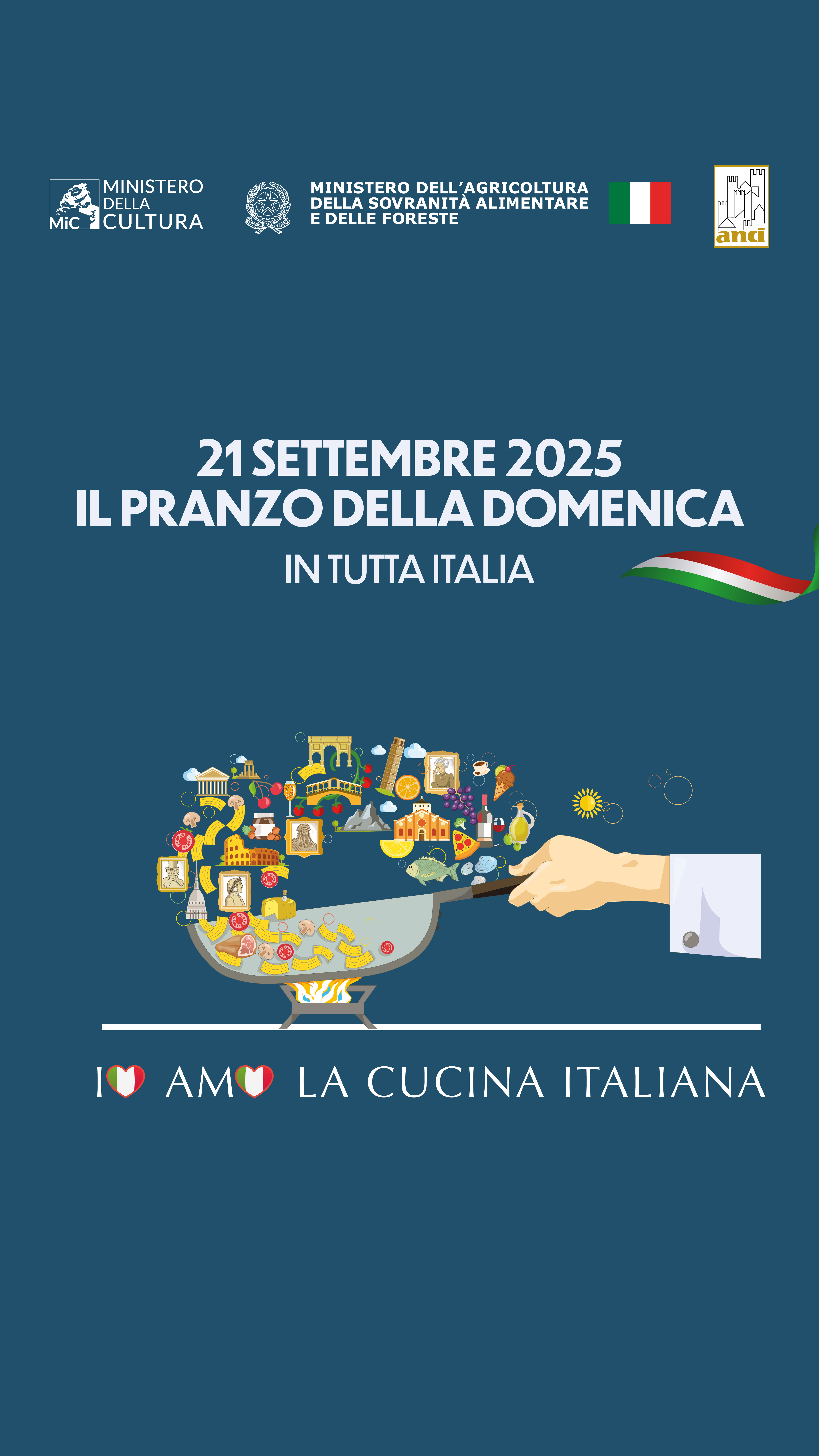 Si segnala l'evento “Il Pranzo della Domenica – Italiani a Tavola”, iniziativa MASAF e MIC promossa da ANCI a sostegno della candidatura della cucina italiana a Patrimonio dell’Umanità, qui troverete tutte le informazioni sulle città aderenti aggiornato in tempo reale.